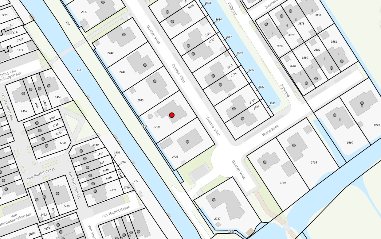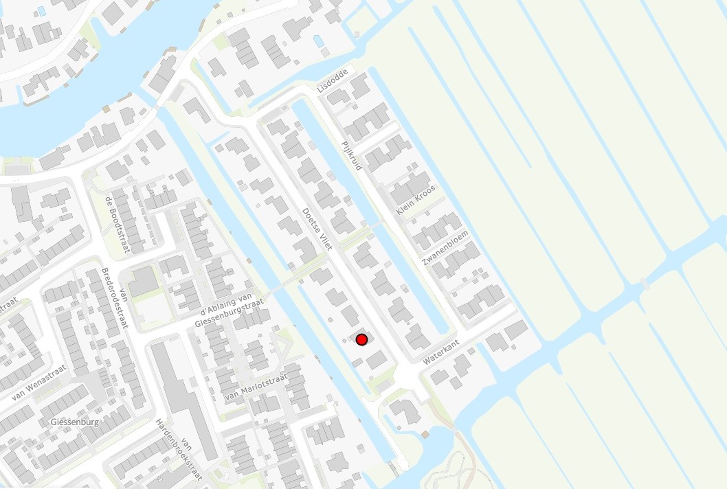 -Wonen aan vaarwater van Doetse Vliet wat in open verbinding staat (bruggetje onder Doetse weg) met het riviertje De Giesen