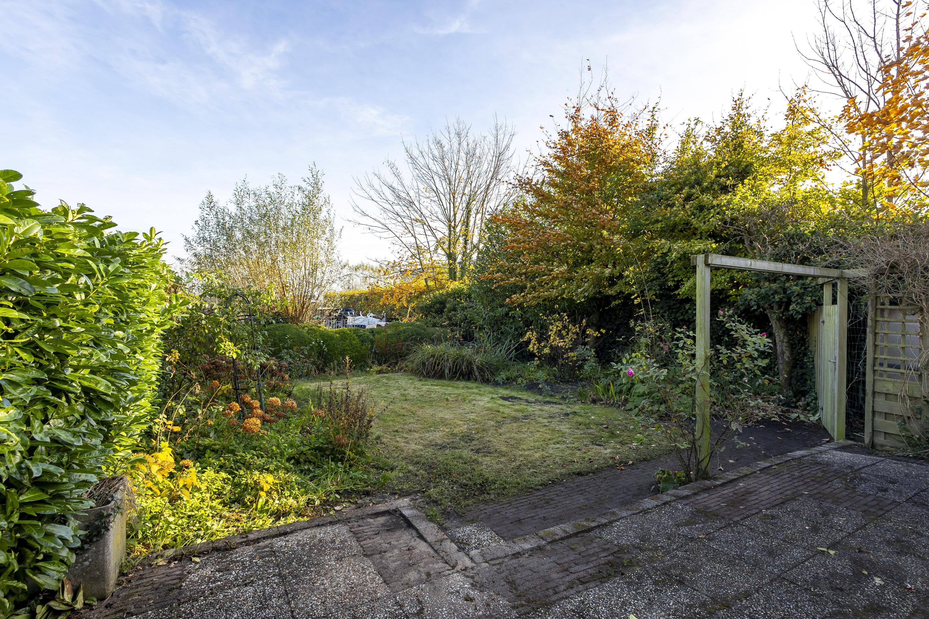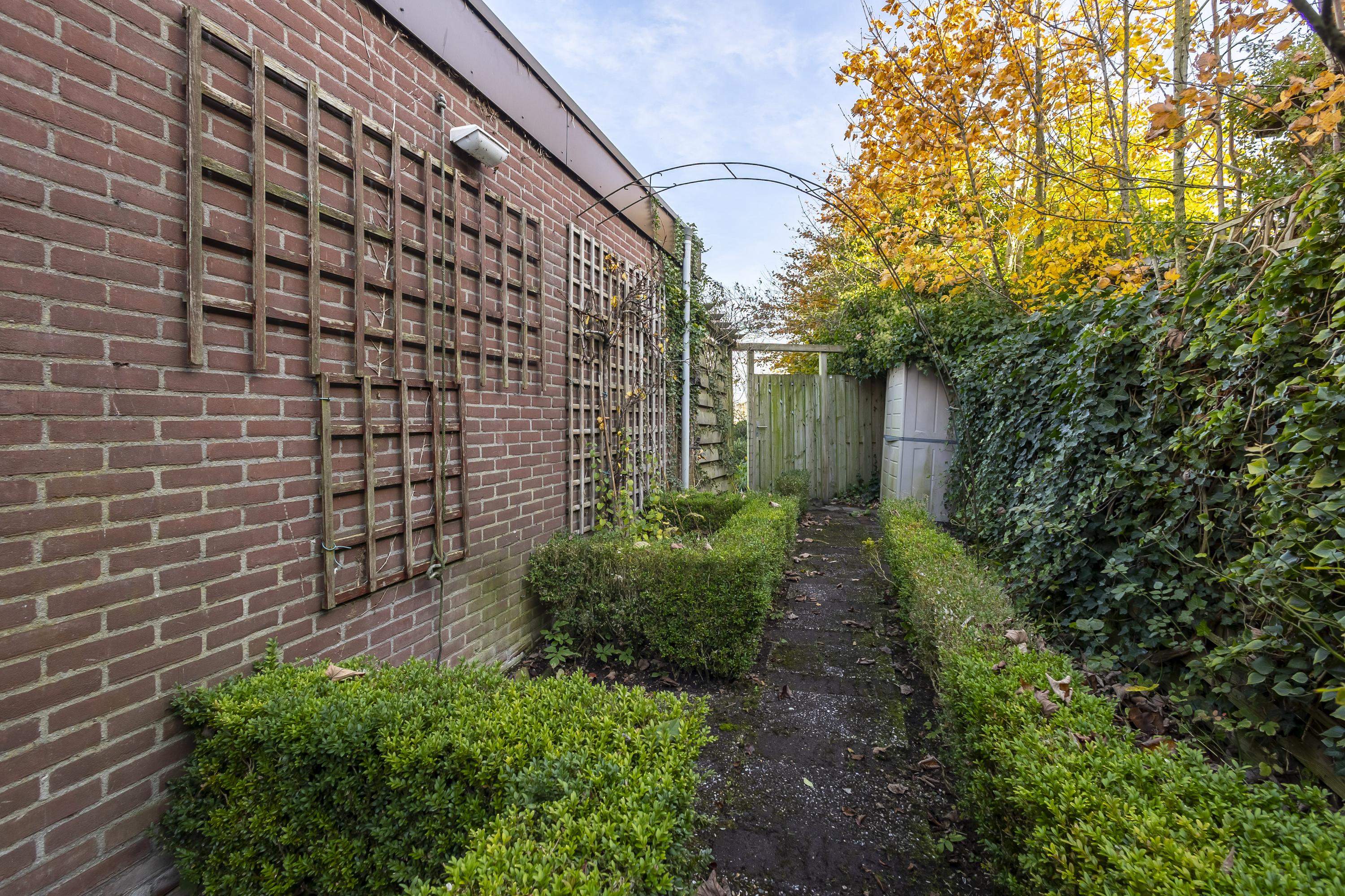 -Via een pad aan de zijkant van de garage kun je in de achtertuin komen