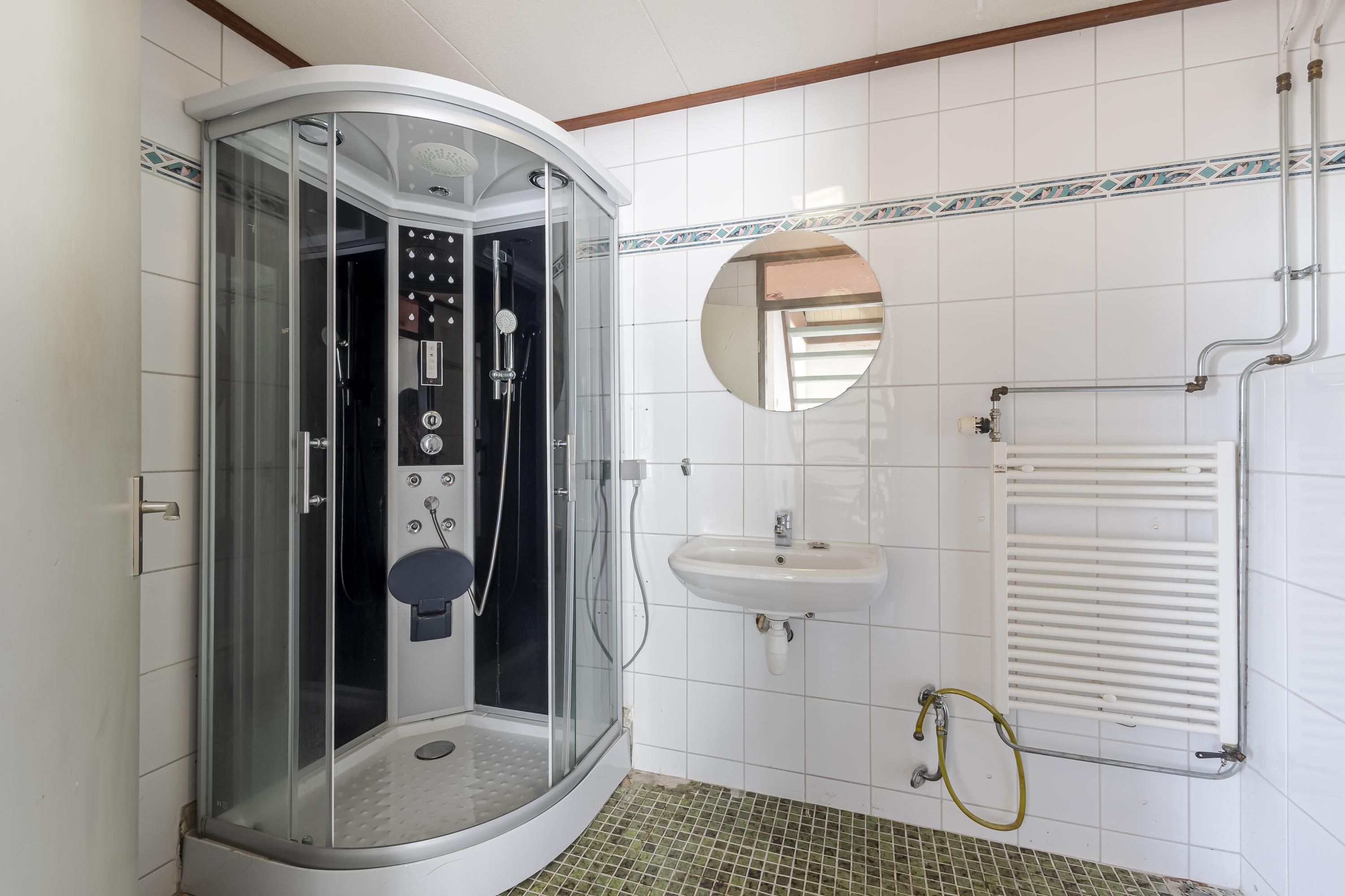 -Dak: houten kapconstructie met pannen gedekt. Plat dak garage kunststof dakbedekking. Lekkage aanwezig