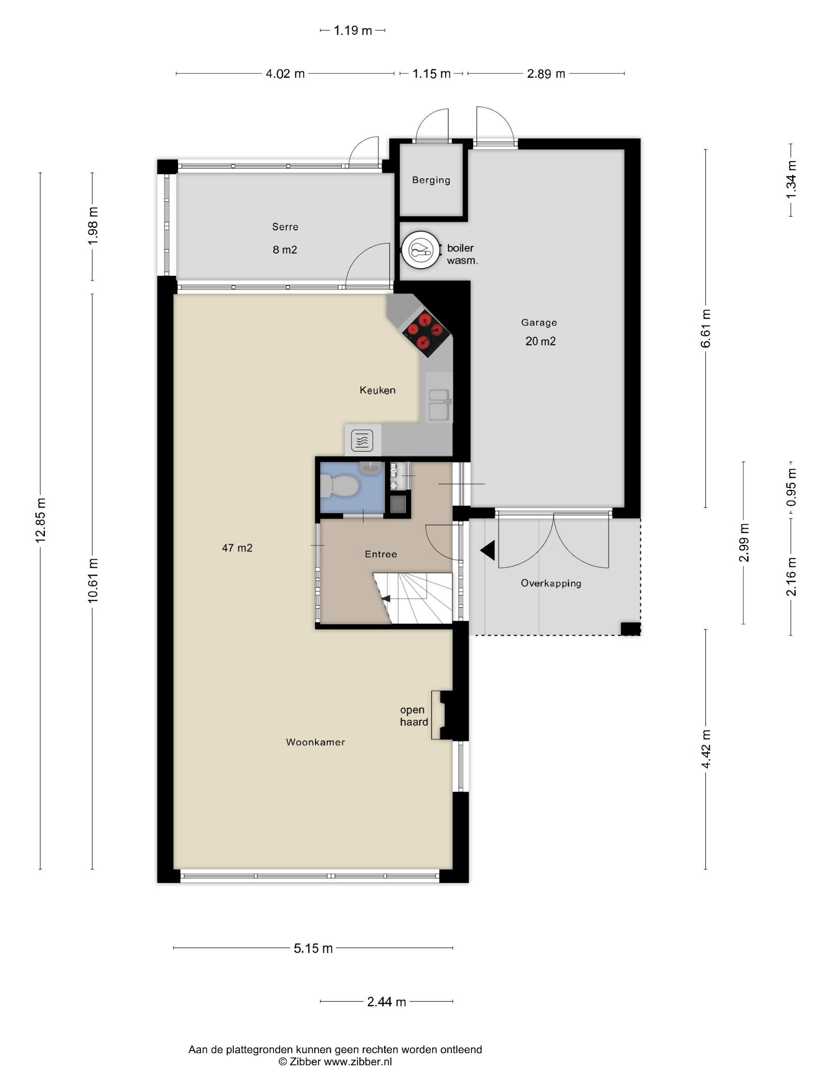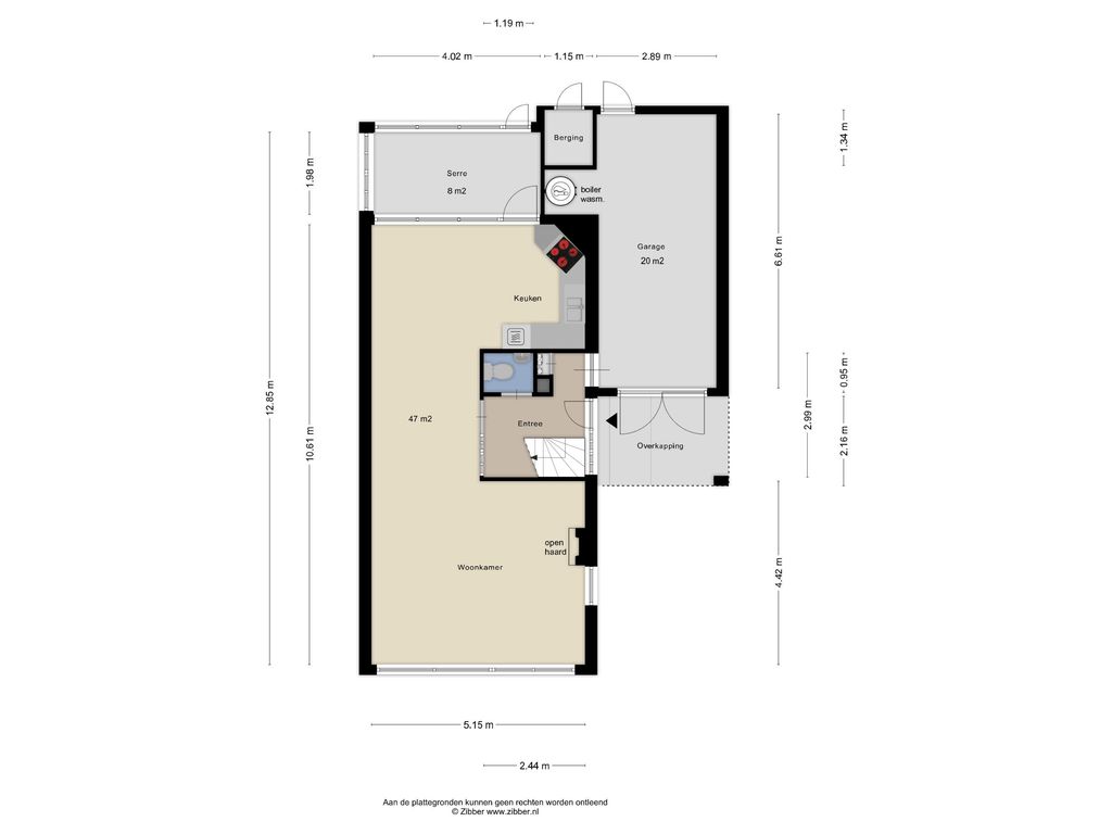 -Totale oppervlakte woonkamer en keuken circa 47 m²
