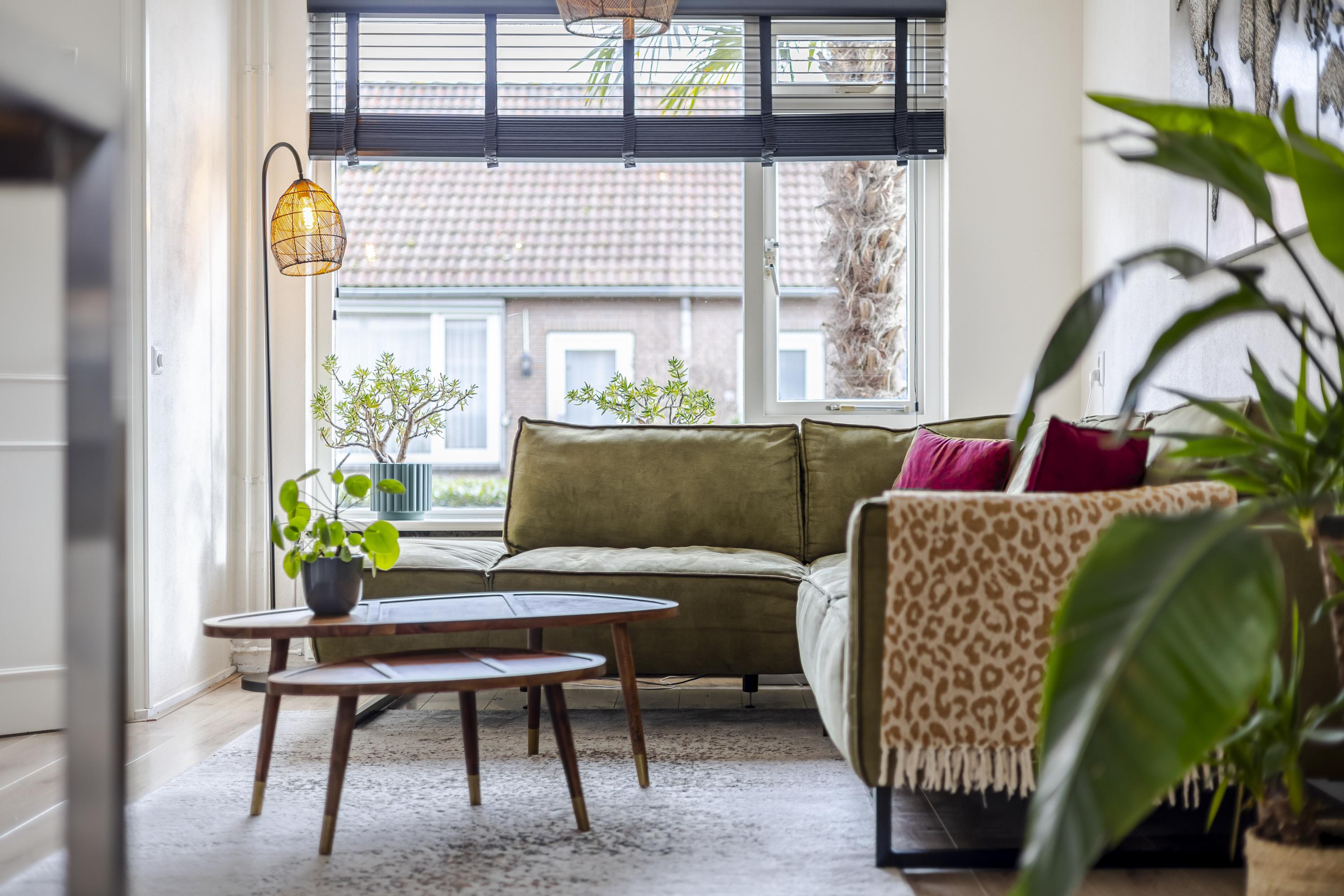 • Gezellige woonkamer met moderne kleurstelling en inrichting