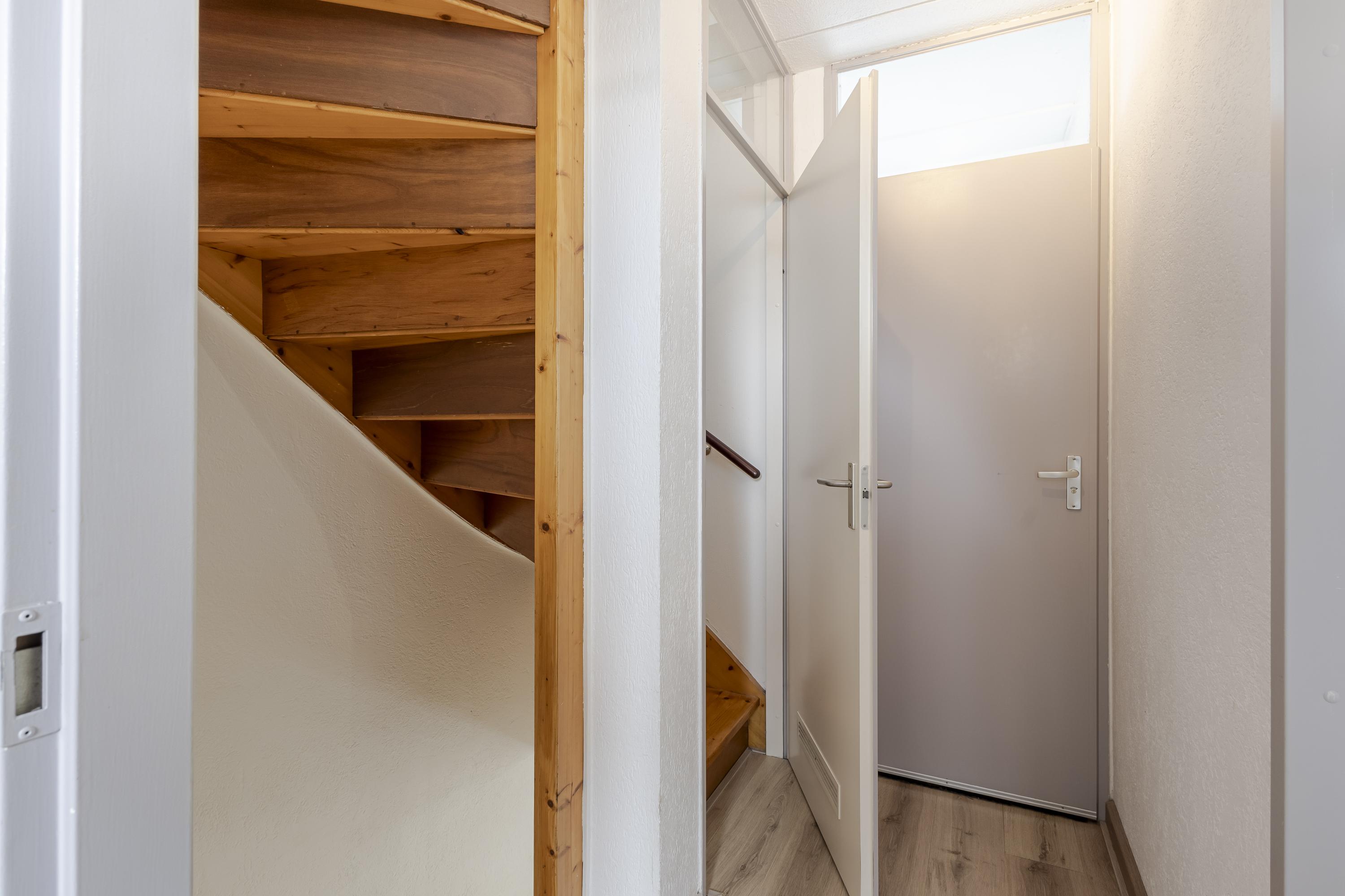 • Open trapopgang naar de eerste verdieping, met provisiekast