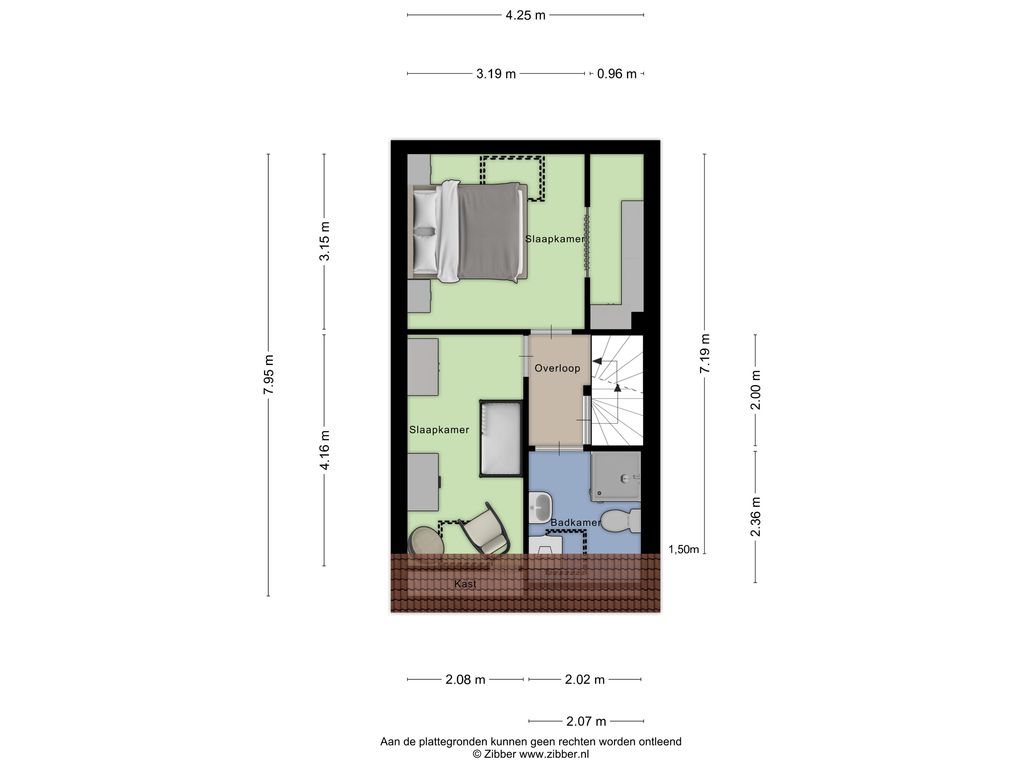 • Volwaardige slaapkamer met royale nokhoogte