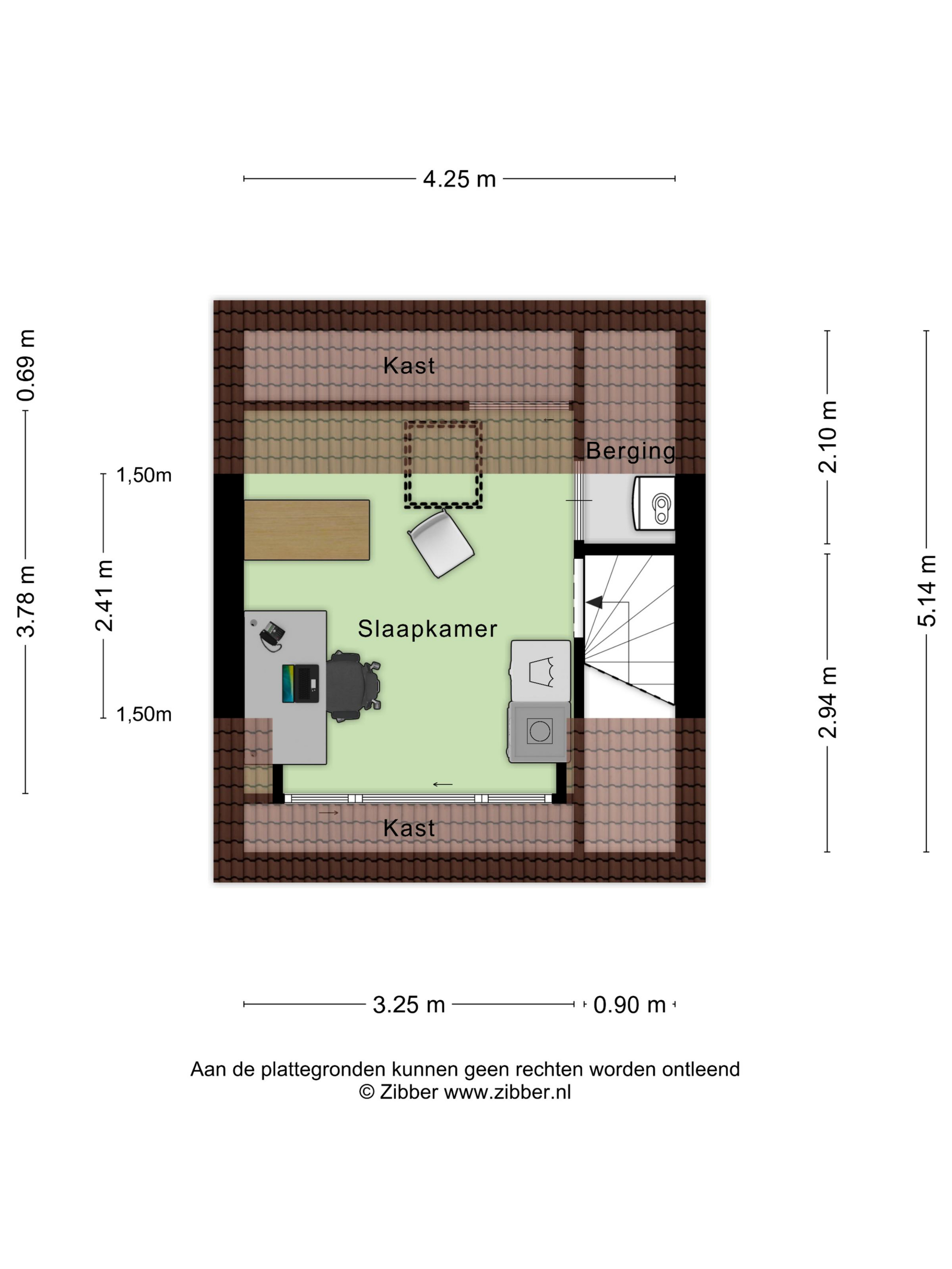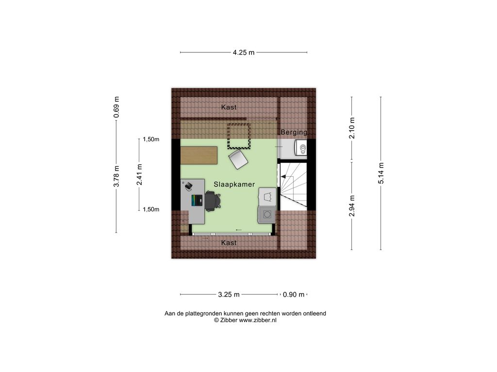 Slaapkamer III – circa 3,25 x 2,41 m (binnen 1,5 m lijn)