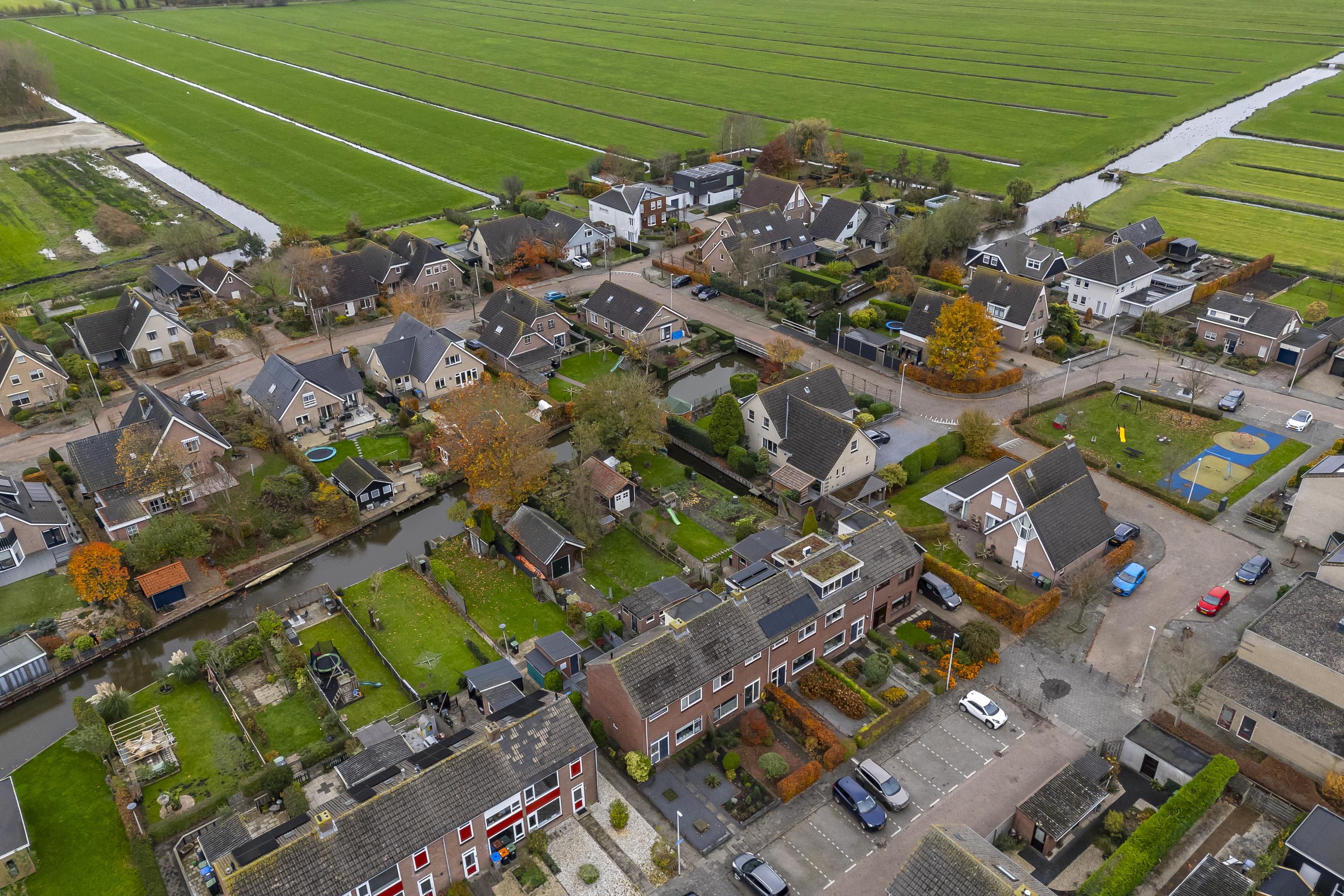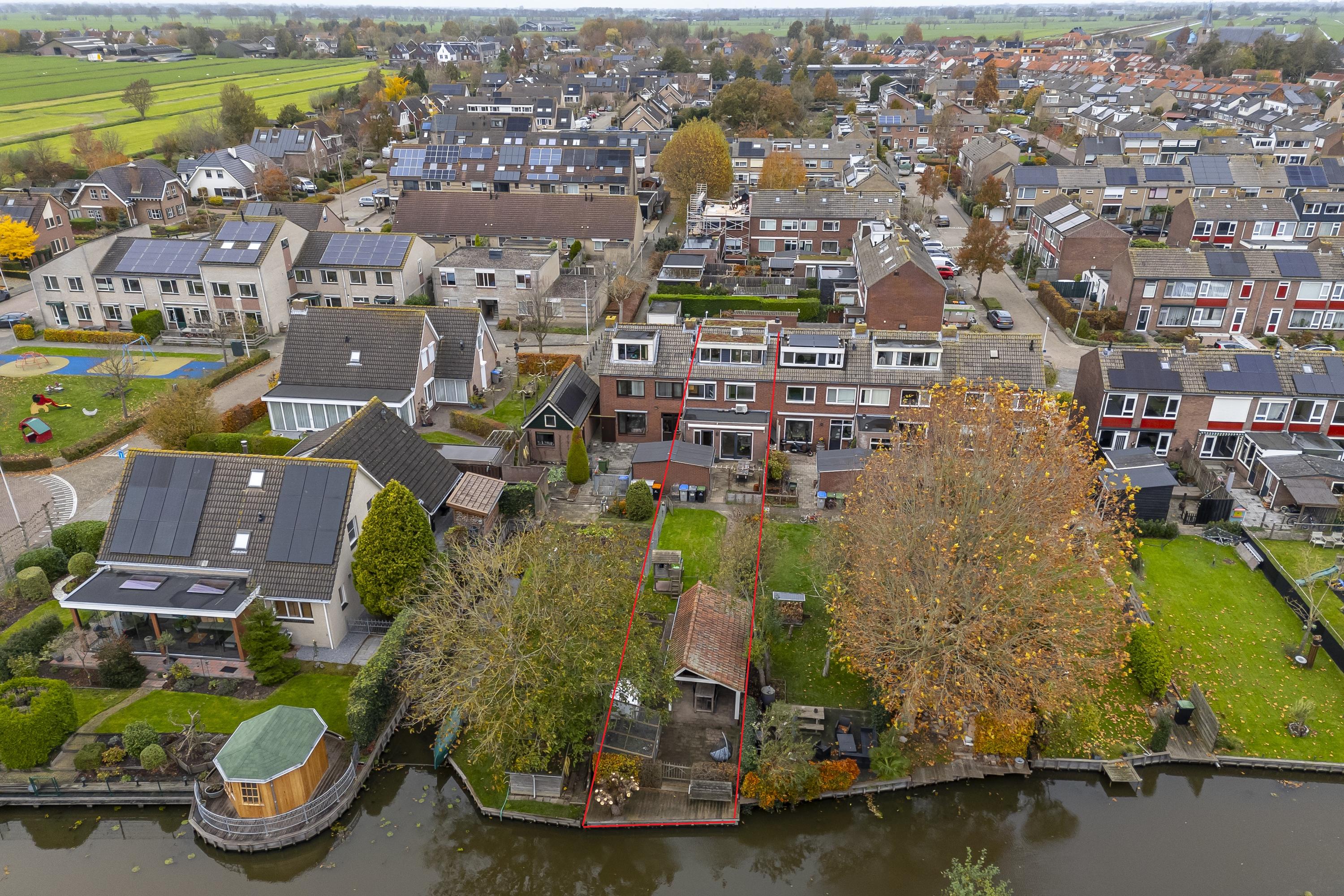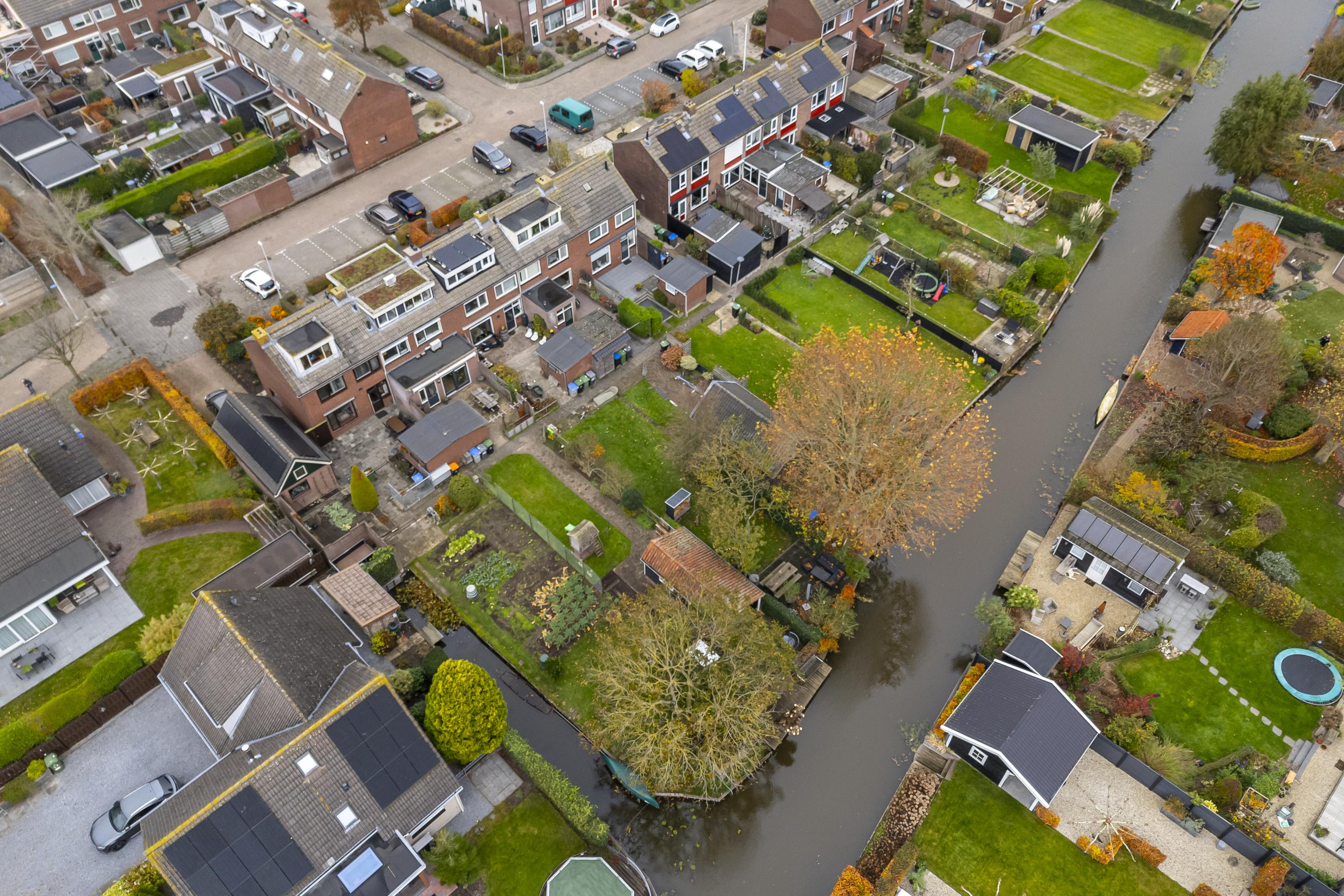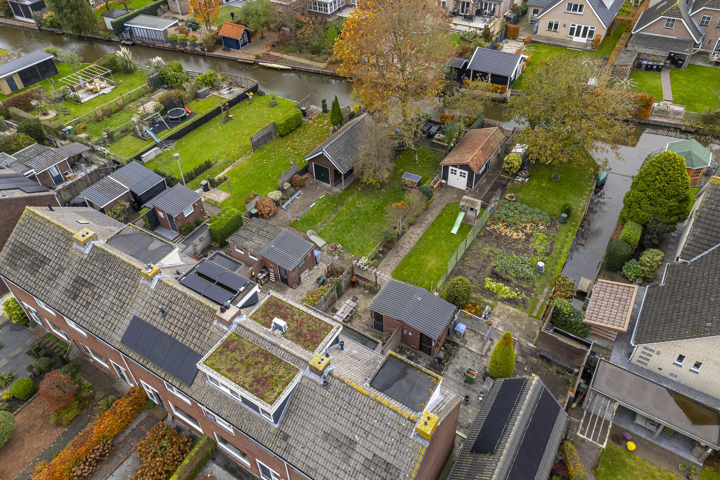 Op het achterste perceel is een groot gazon met speelrek en grote schuur gebouwd met aangrenzende veranda, die gericht is naar het water. Wat kun je hier en aan de tuin / vlonder aan het water heerlijk vrij zitten! We hebben schitterende luchtfoto’s laten maken om je een uitstekende indruk te geven van deze locatie. Kom het echter vooral zelf ervaren met een persoonlijke bezichtiging!