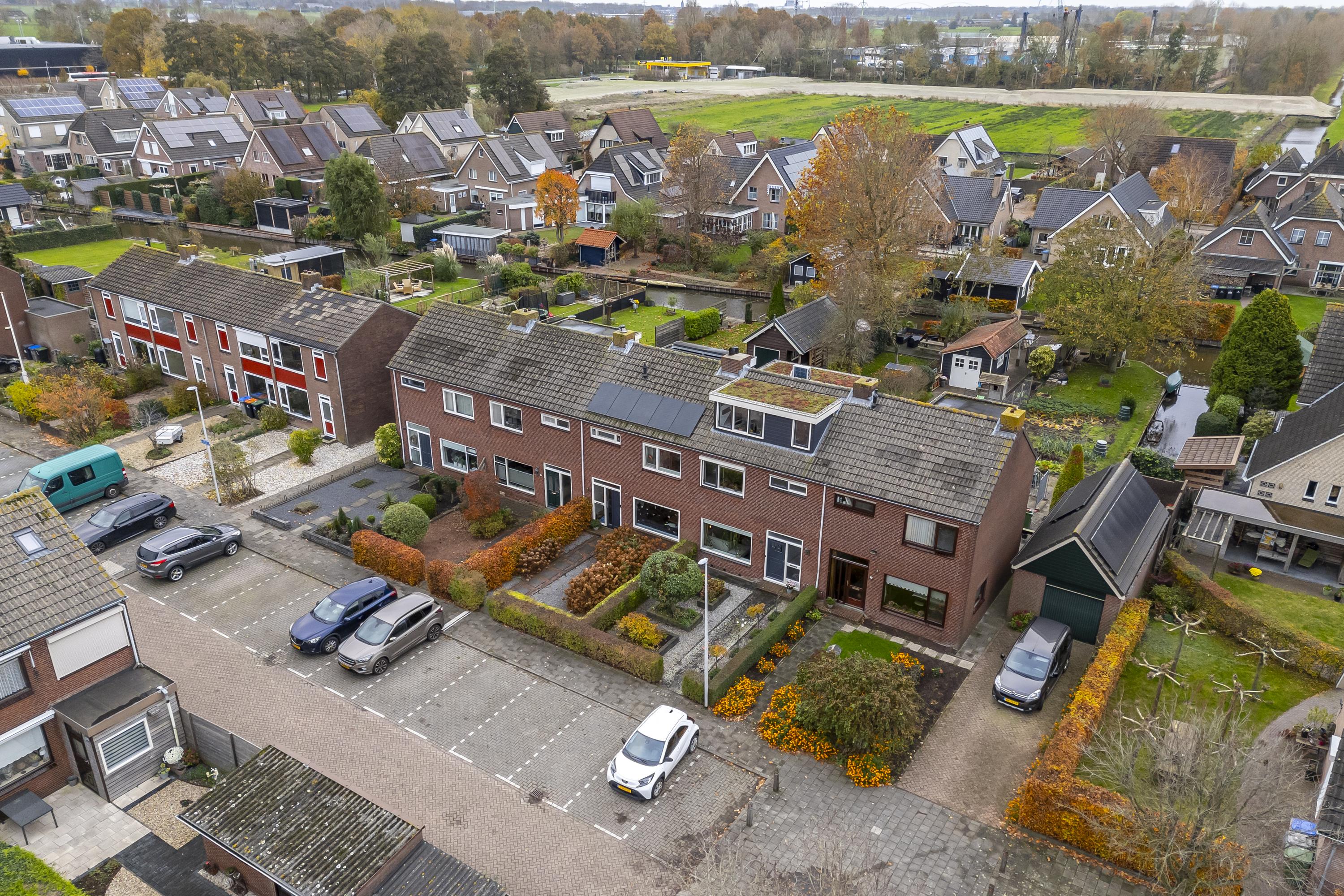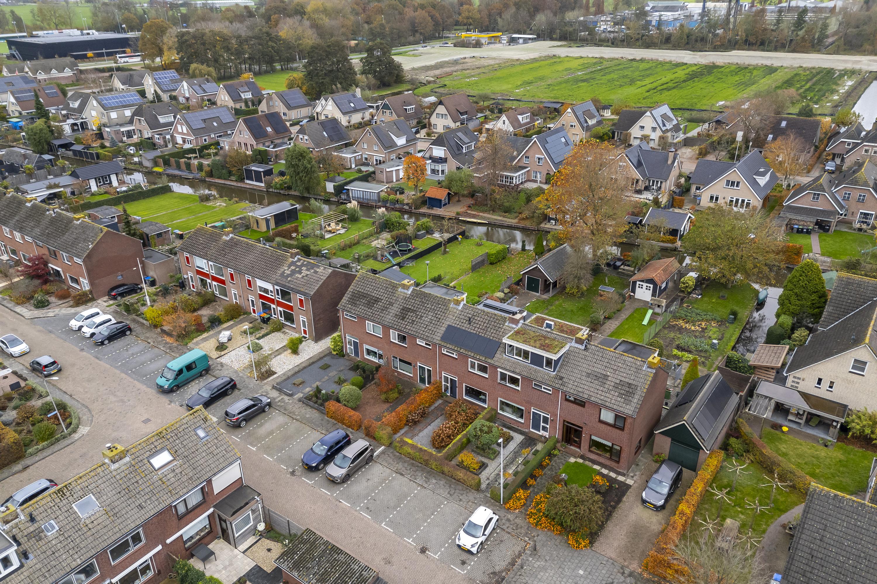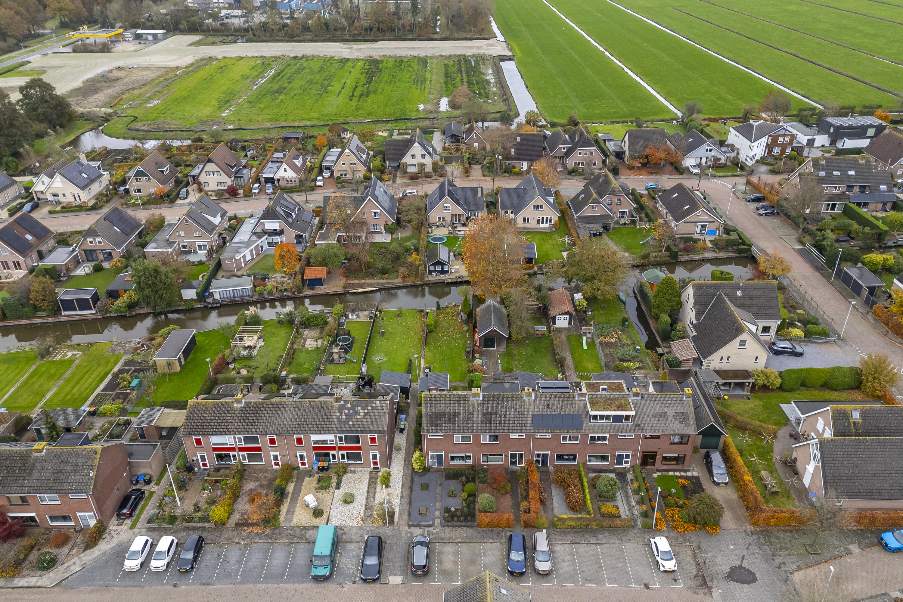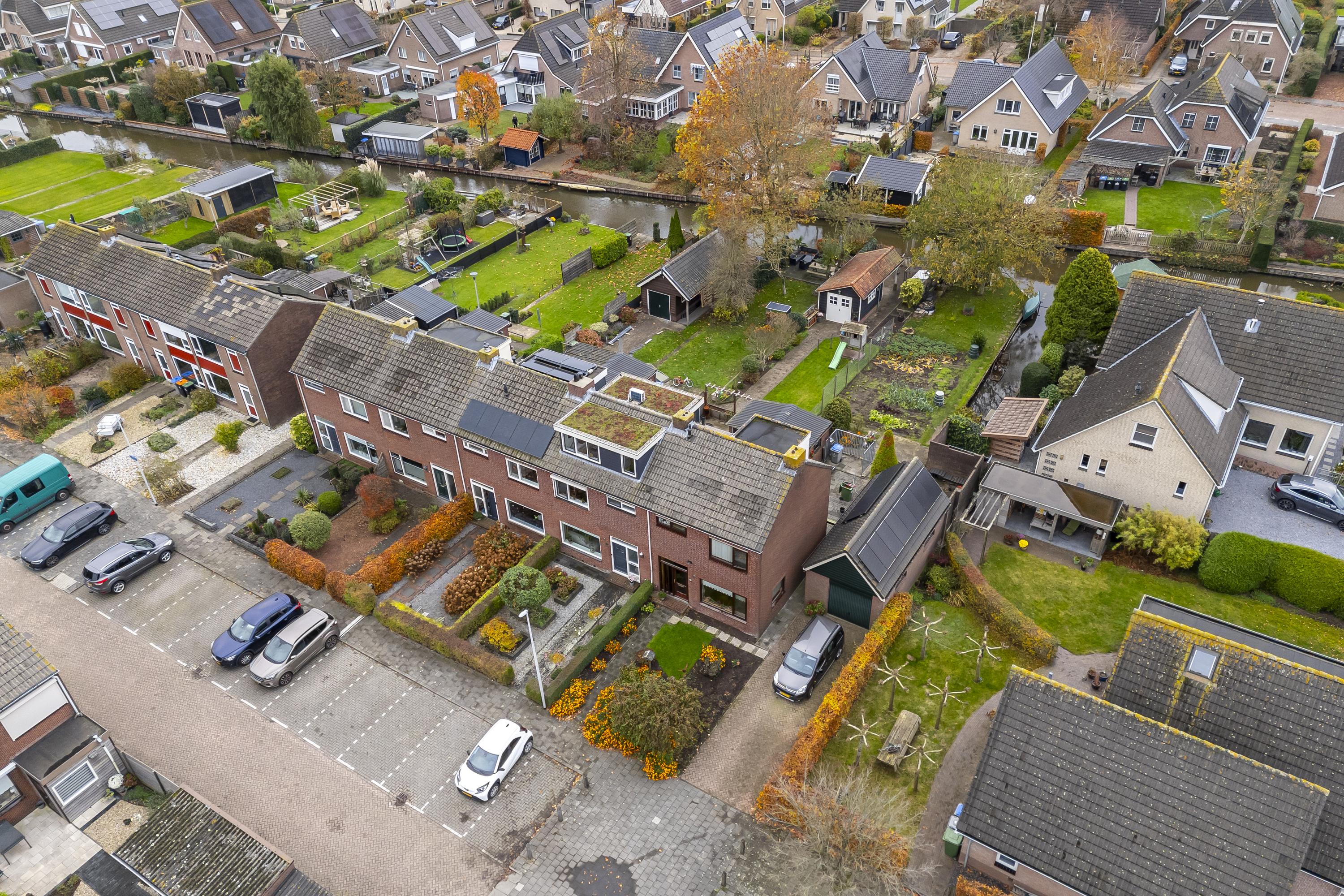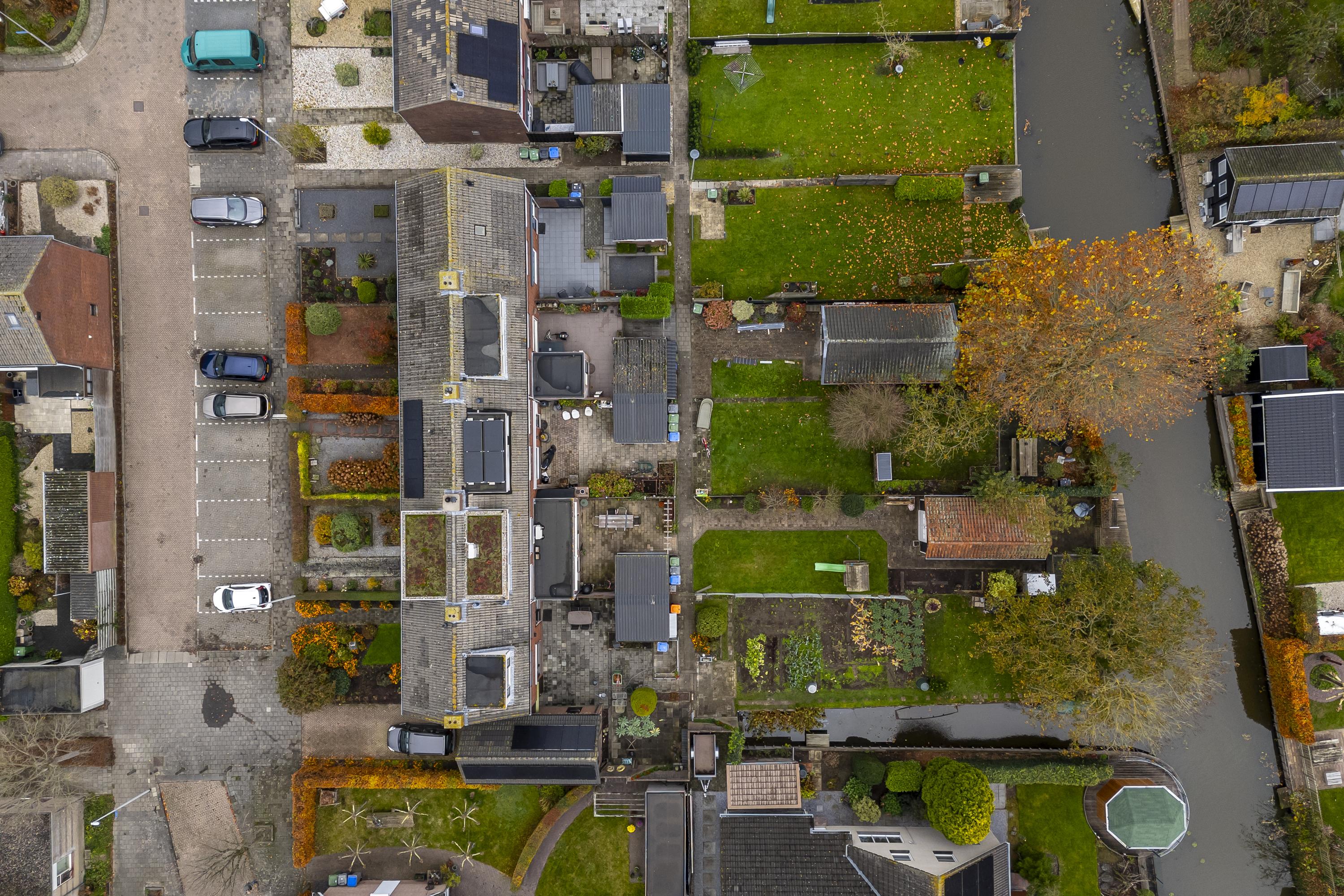 Op het achterste perceel is een groot gazon met speelrek en grote schuur gebouwd met aangrenzende veranda, die gericht is naar het water. Wat kun je hier en aan de tuin / vlonder aan het water heerlijk vrij zitten! We hebben schitterende luchtfoto’s laten maken om je een uitstekende indruk te geven van deze locatie. Kom het echter vooral zelf ervaren met een persoonlijke bezichtiging!