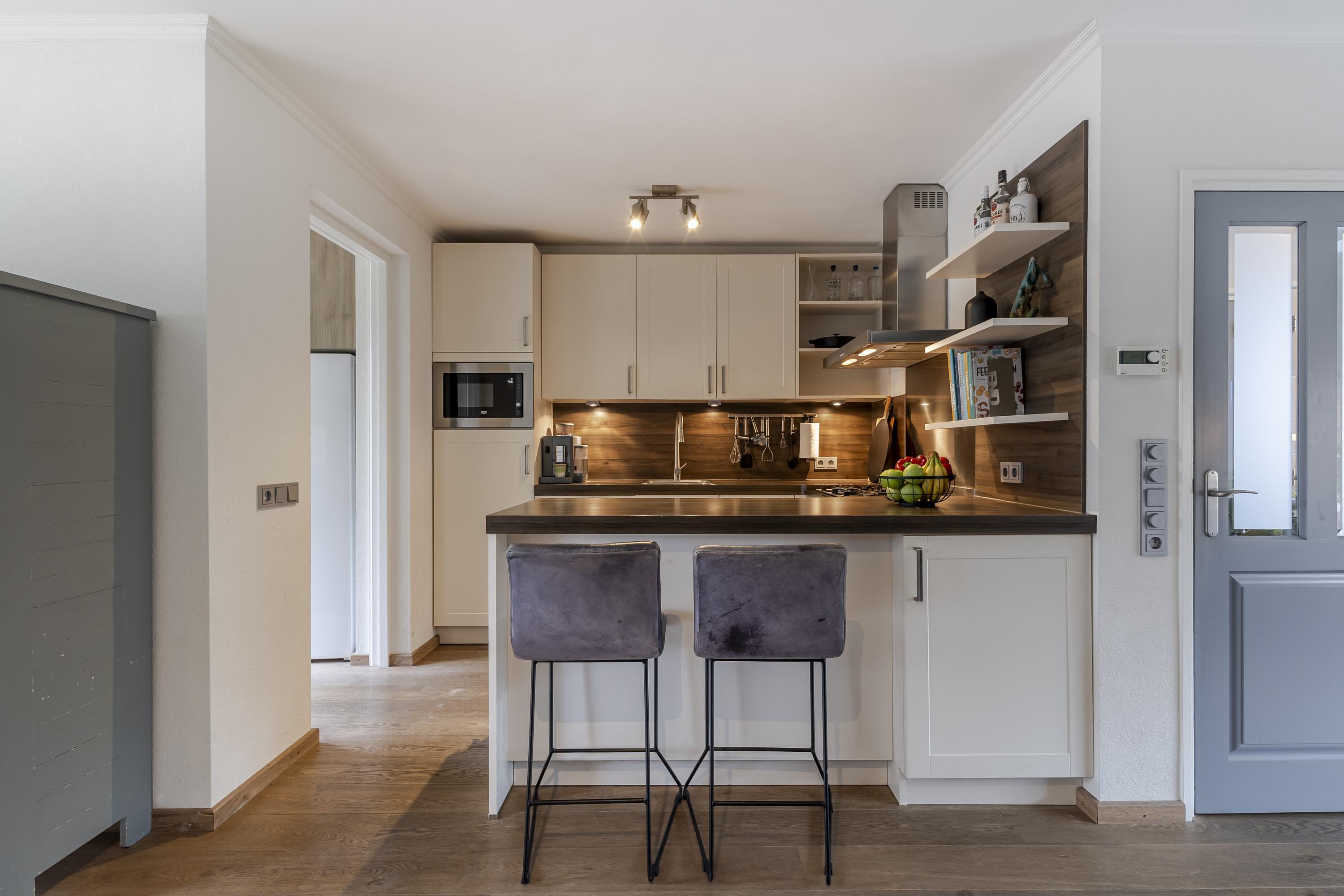 -Ruime woonkamer, open keuken en praktische bijkeuken