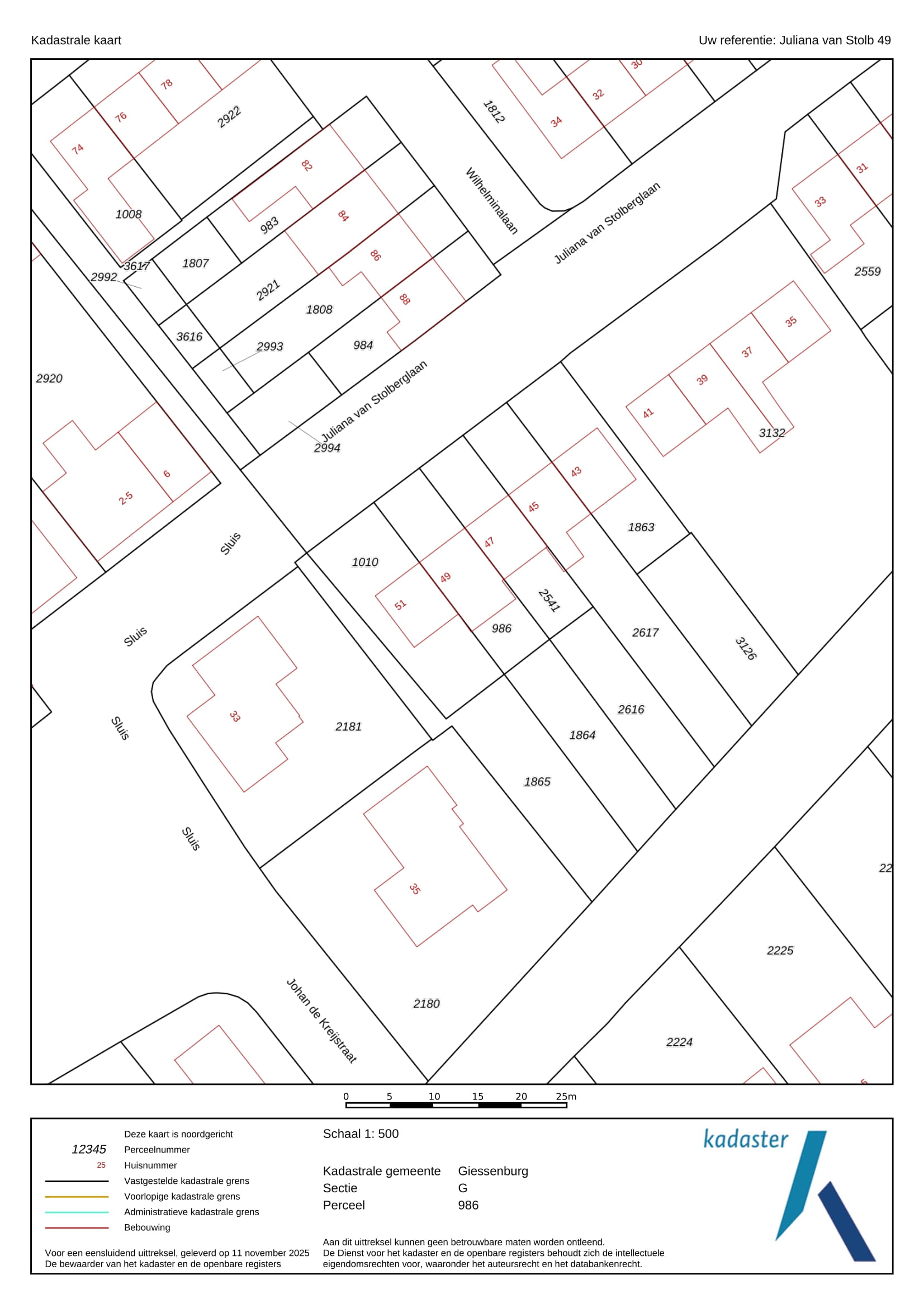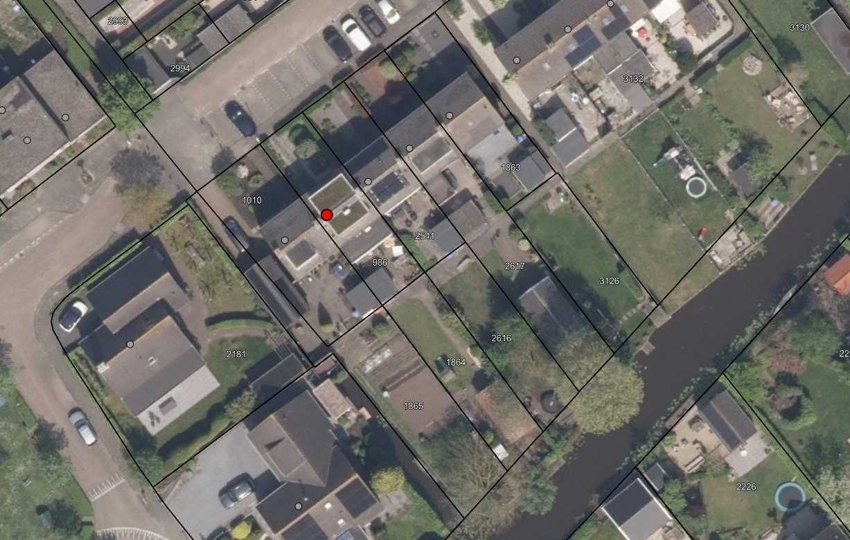 -Totaal 313 m² eigen grond / kadaster 986 (153 m²) en 1864 (160 m²)