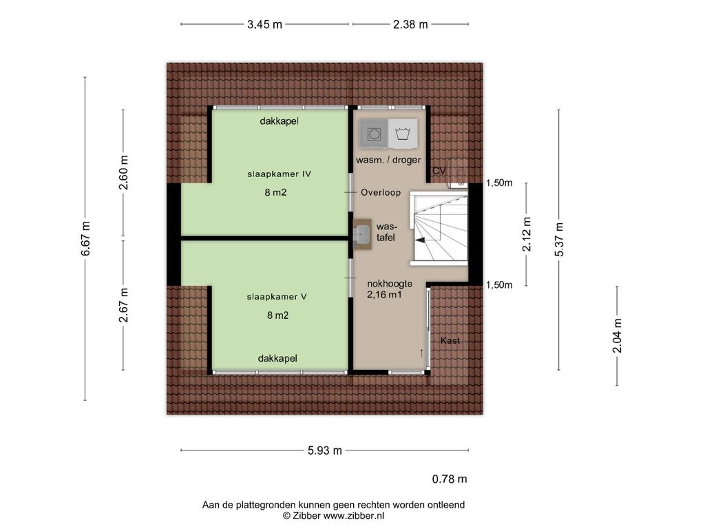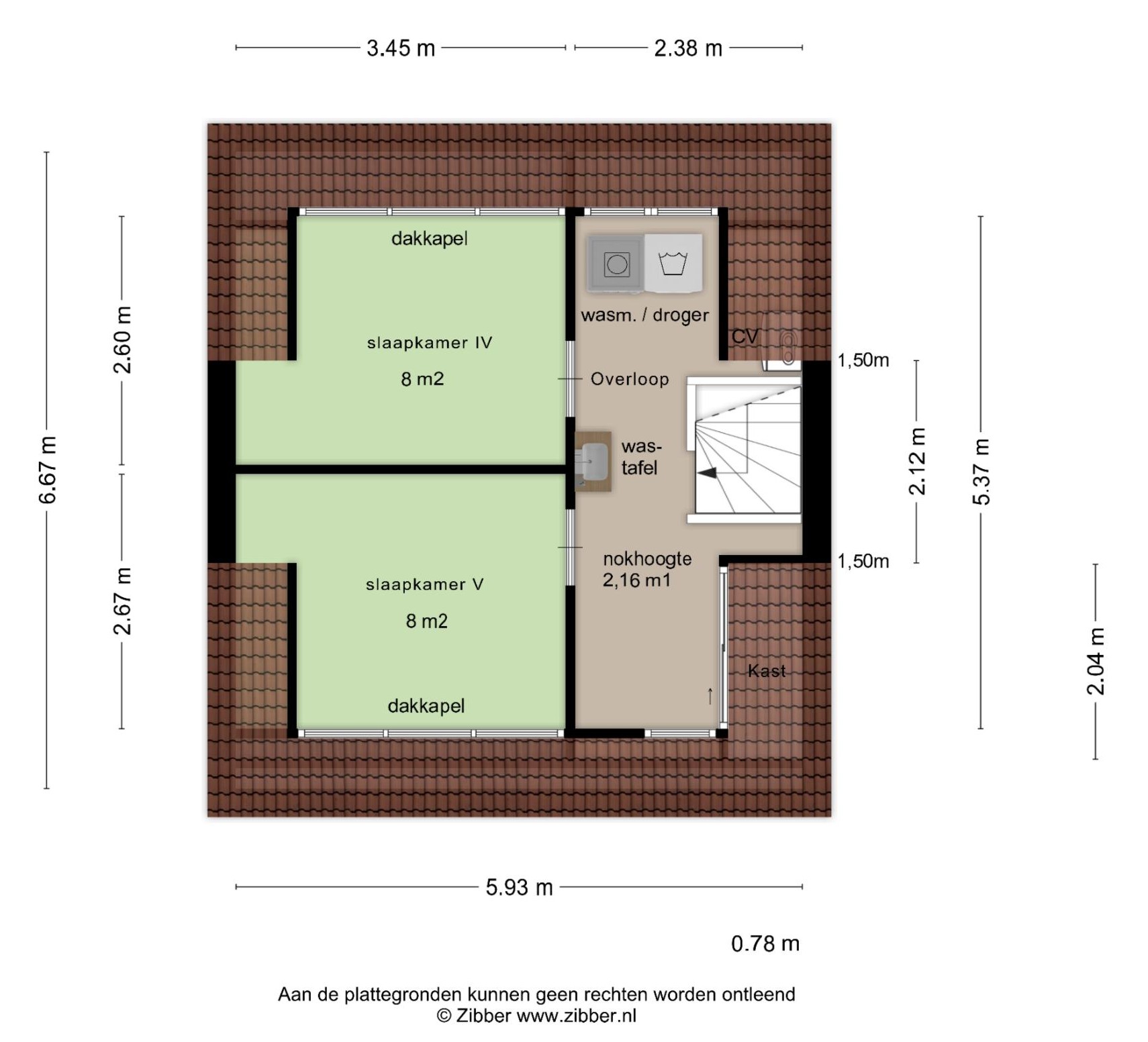 -Zolder met ruime stahoogte, plafond op 2,16 m¹