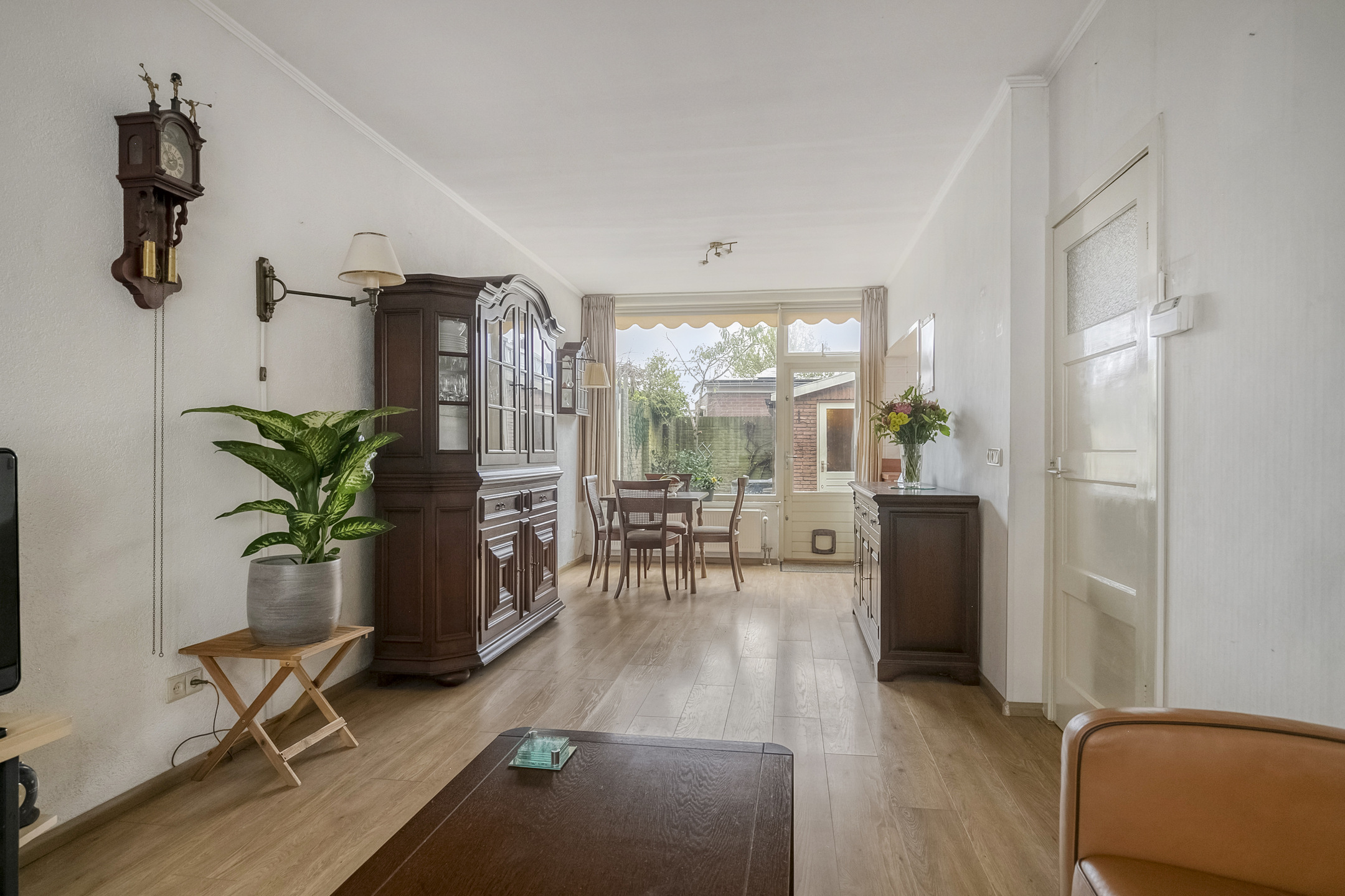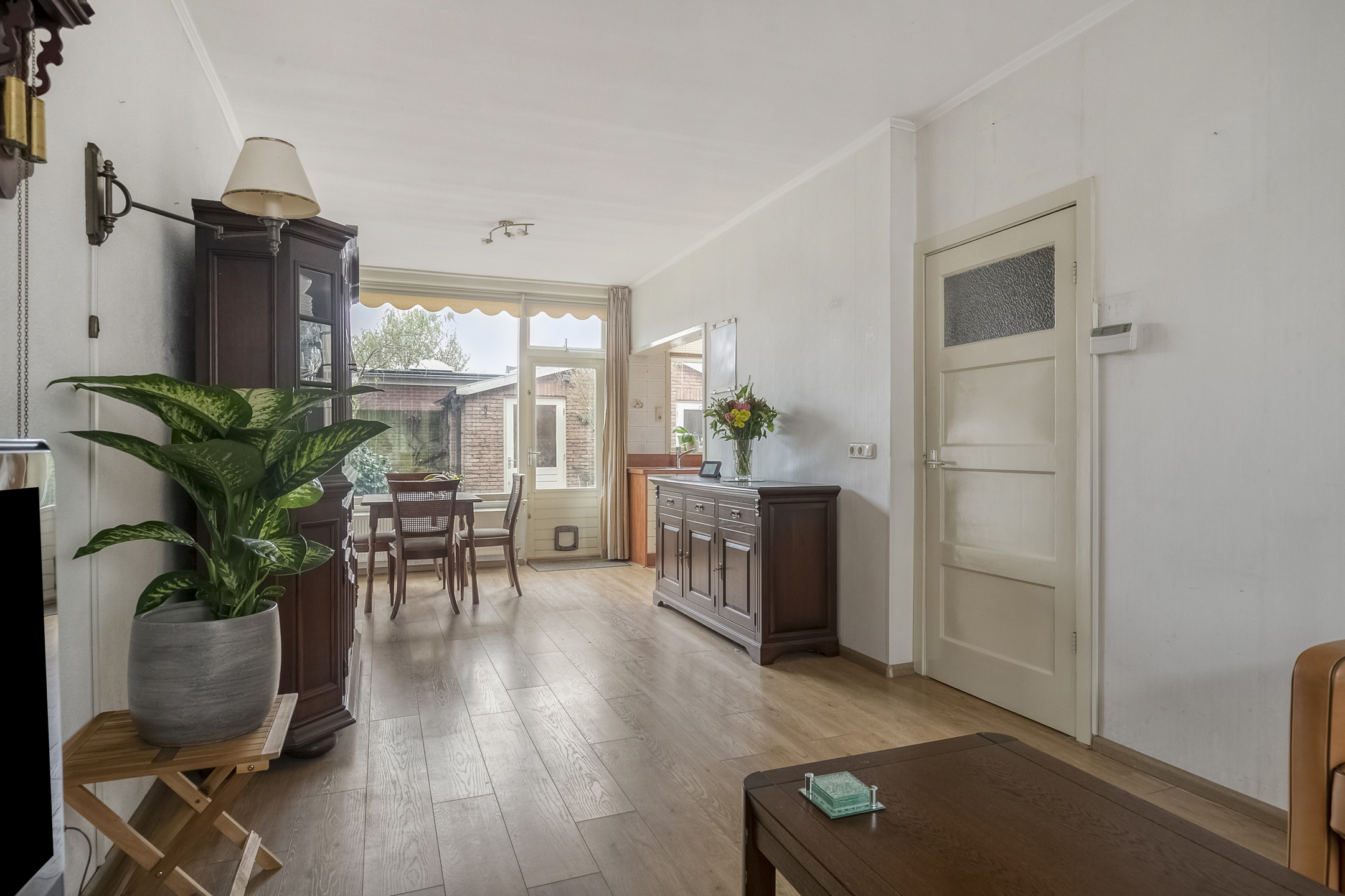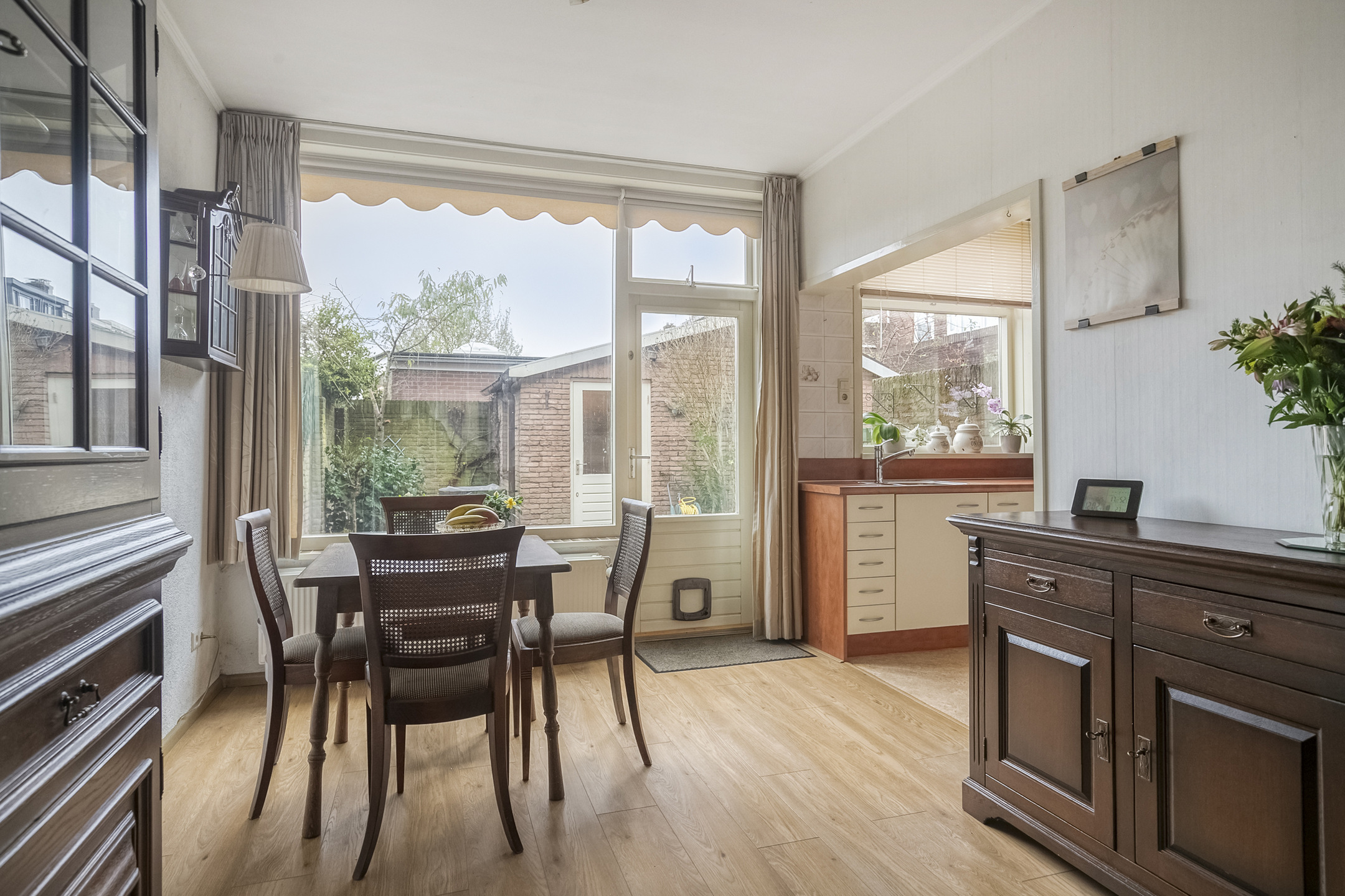 De lichte woon-/eetkamer heeft aan de voorzijde een sfeervolle erker met zicht op de straat; aan de achterzijde bevindt zich de eethoek met deur naar de tuin, waardoor binnen en buiten mooi met elkaar verbonden zijn. De ruimte laat zich makkelijk en logisch indelen.
