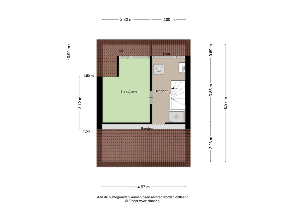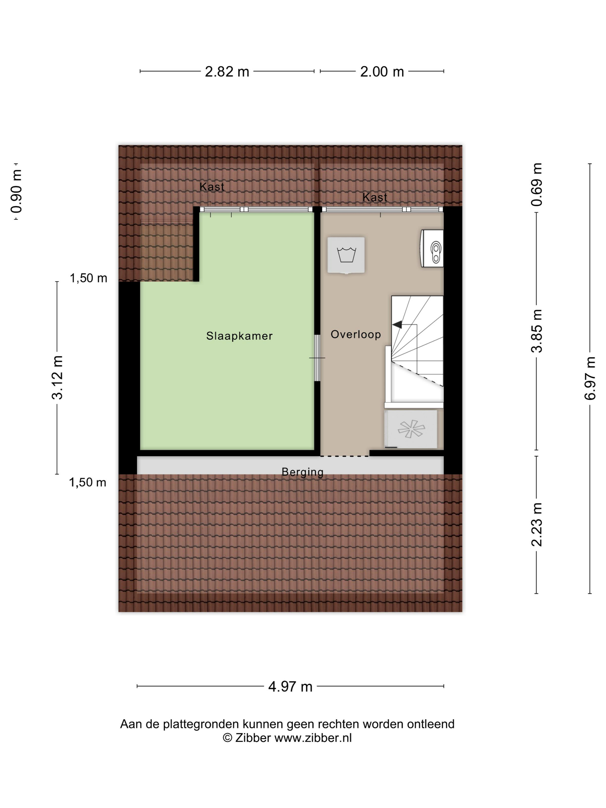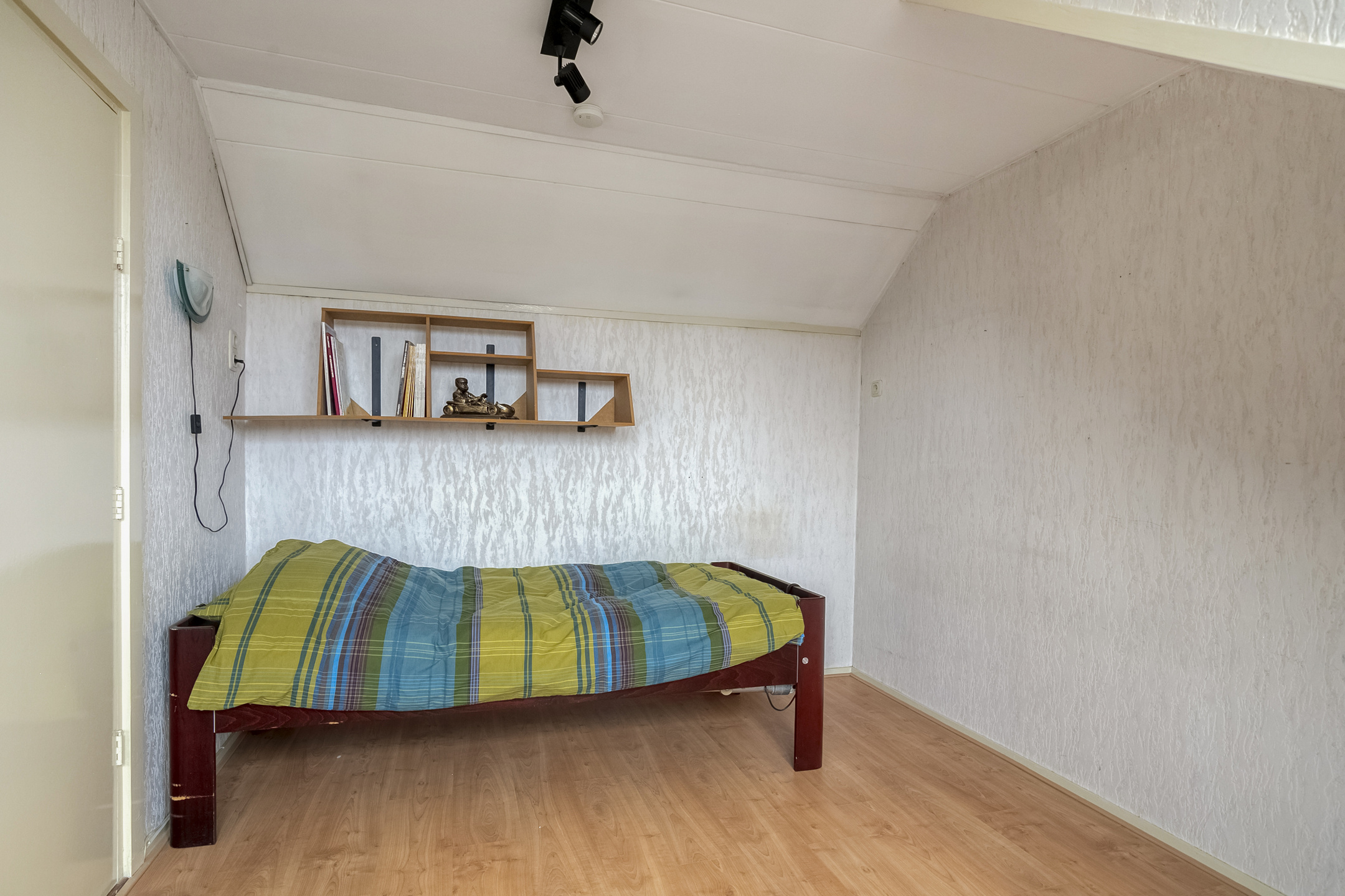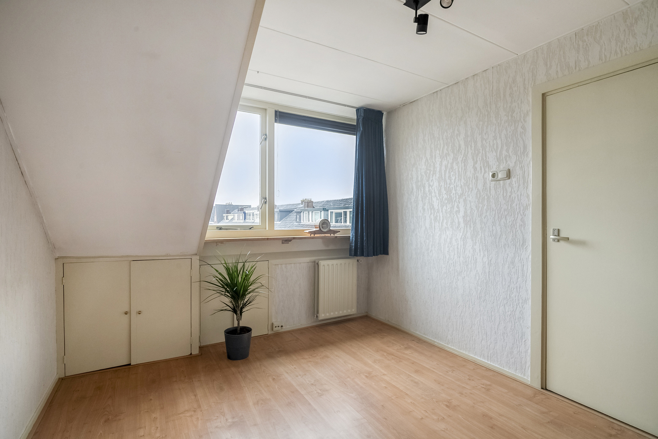 Bereikbaar via een vaste trap. Hier bevindt zich een ruime vierde slaapkamer met dakkapel, de wasmachineaansluiting, de cv-opstelling en extra bergruimte achter de knieschotten. Deze verdieping biedt bovendien mogelijkheden voor verdere uitbreiding door het plaatsen van een extra dakkapel.