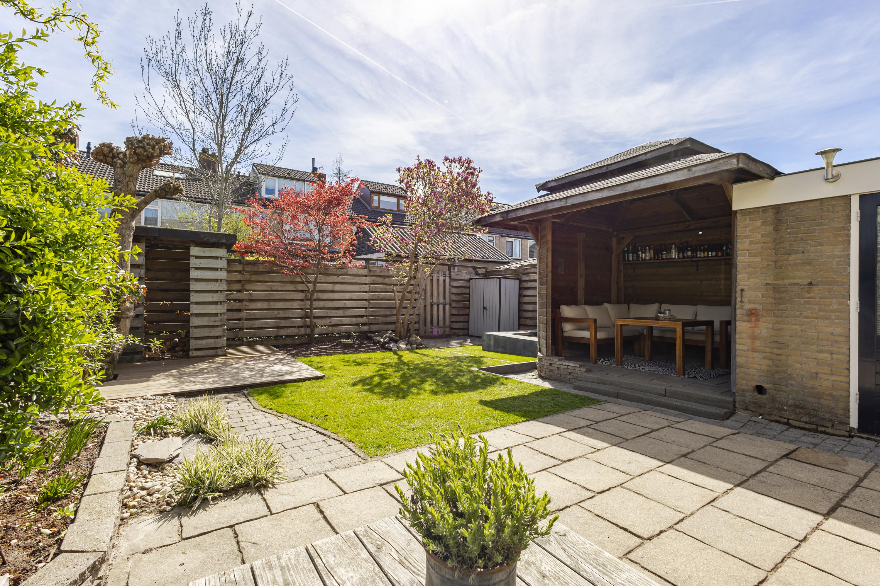 -Zonnige en ruime tuin van 10,73 x 9,35 m, met sfeervolle veranda