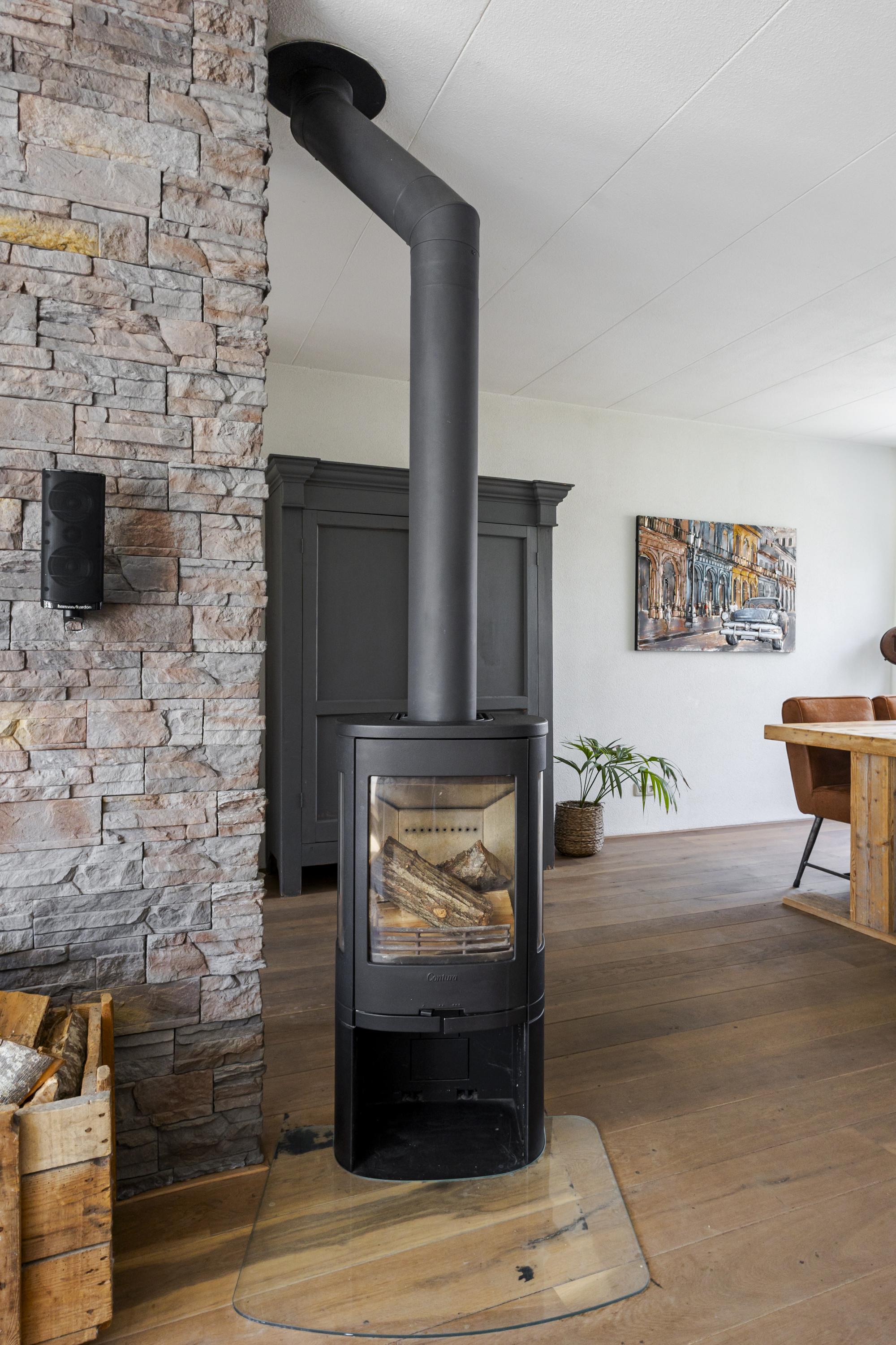-Sfeervolle houtkachel (blijft niet achter) met dubbelwandige pijp