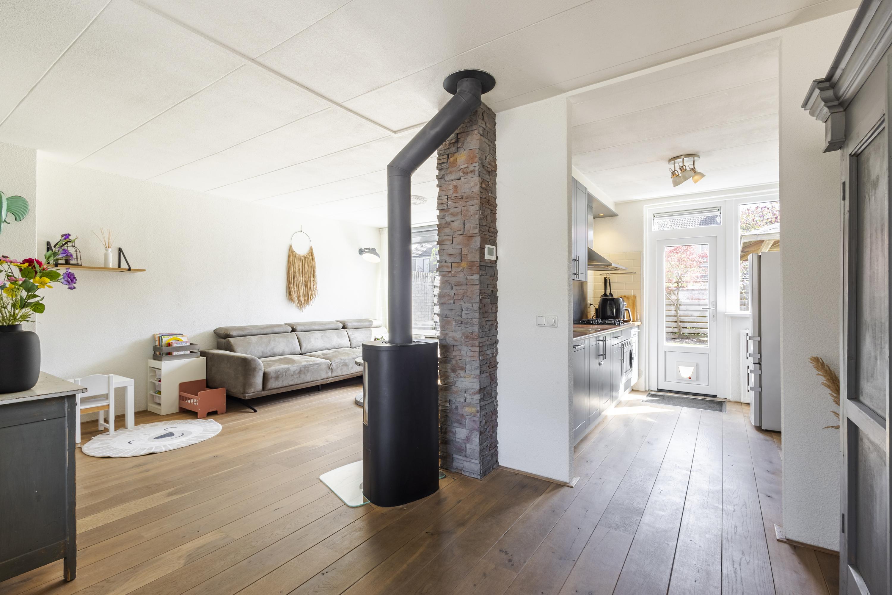 -Warm water en verwarming: CV-combiketel Remeha HR 2012. Houtkachel woonkamer (blijft niet achter), met dubbelwandige pijp (blijft uiteraard wel achter)